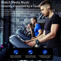 TWS Bluetooth earbuds stored inside the watch strap side, charged by the watch itself.